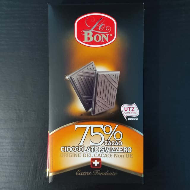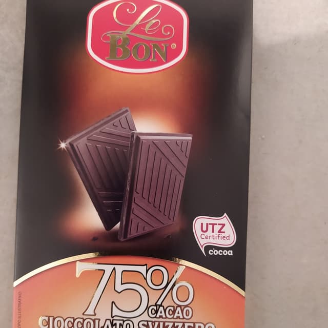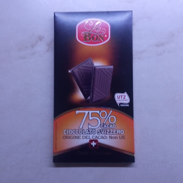 Cioccolato fondente da supermercato 75% , prezzo ok , sapore buono .