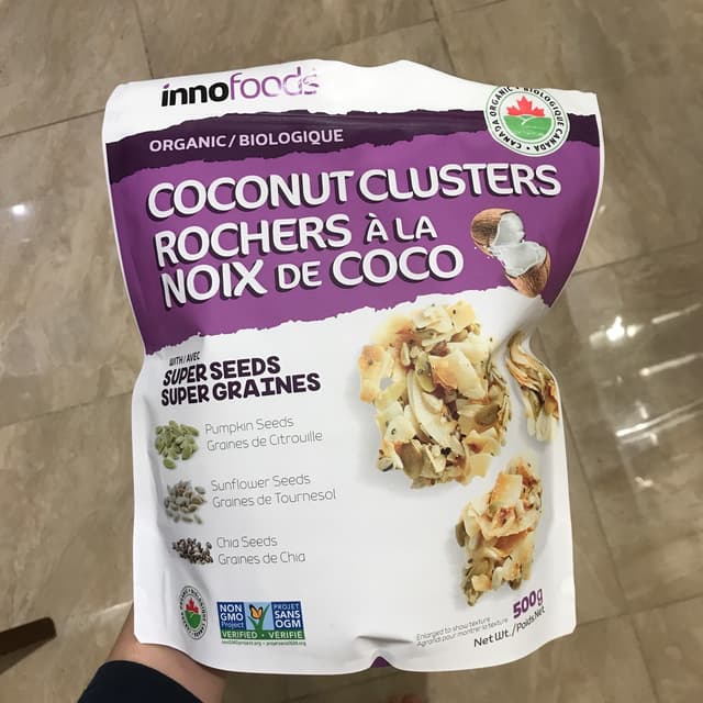 Made from some of Earth’s best stuff, Innofoods Coconut Clusters are an amazingly delicious super snack. They’re organic and the perfect complement to salads, yogurt, cereal or just eat them straight out of the bag! Lightly sweetened coconut that‘s non-GMO, gluten-free, vegan and contains no preservatives, artificial colours or flavours. You’re gonna love them!
