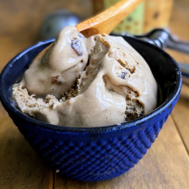 This frozen dessert is a unique blend of cold brew coffee and boba flavors. It is made with non-dairy ingredients, making it a vegan-friendly option. The creamy texture of the ice cream is infused with the bold taste of coffee, making it a perfect treat for coffee lovers. The addition of chewy tapioca pearls adds a delightful texture, enhancing the overall experience. With its refreshing sweetness and chewy bits, this frozen dessert is sure to satisfy your cravings for something sweet and refreshing. Try it today and experience the perfect balance of coffee and boba in every bite.