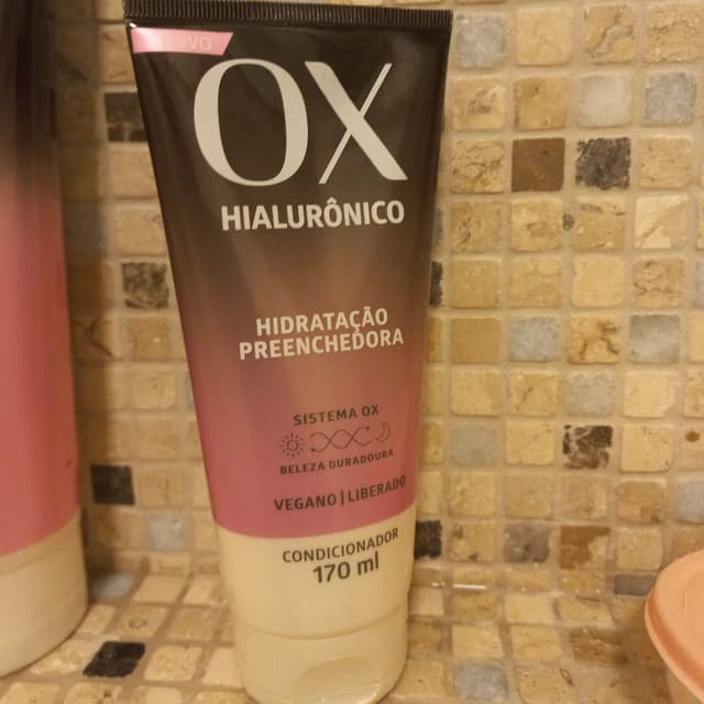 Condicionador OX hialurônico, muito bom deixa os cabelos macios e sedosos.