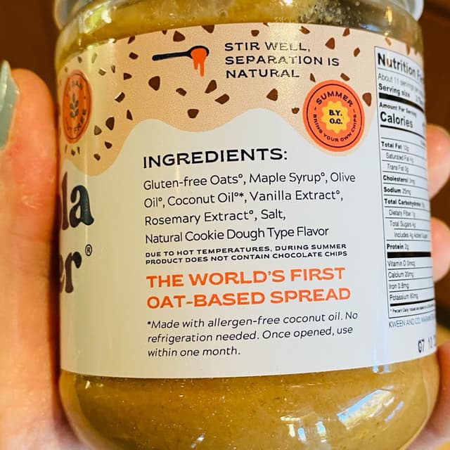 Curiosity won me over and I decided to try granola butter. I am a huge nut butter and seed butter fan but I usually stick to my favorites so I don’t review new ones very often. Granola butter, however is new to me. The oil and solids were separated when I opened the jar but it was very easy to churn it and the consistency was silky relatively quickly. It reminds me of a smooth raw almond butter when spread. The flavor is delicious! It did taste of a cookie dough granola and is sweet but not sickly. Though I do prefer a natural nut butter this is a nice treat and the ingredient list isn’t too long. Excited to try the other flavor I purchased. Great for folks w nut and seed allergies! #oathaus #granola #granolabutter #cookiesough