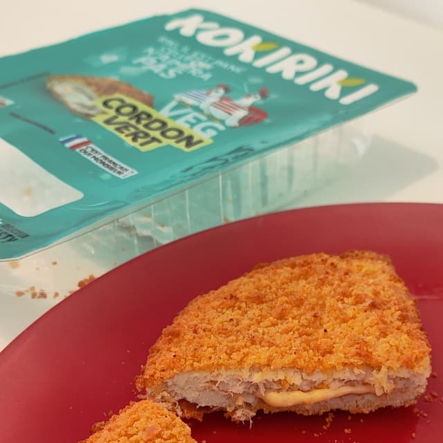 Assez proche du fameux "cordon bleu". Le fauxmage est sympa et la composition nutritionnelle est assez bonne. Personnellement j'aime beaucoup, c'est malheureusement un peu cher mais en ce moment tout est cher...