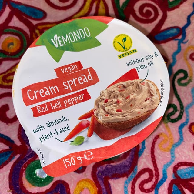 I was surprised by how good this bell pepper spread tasted. It has a hummus consistency with little pepper chunks in it. It is slightly spicy, very creamy. I got it from #lidl.