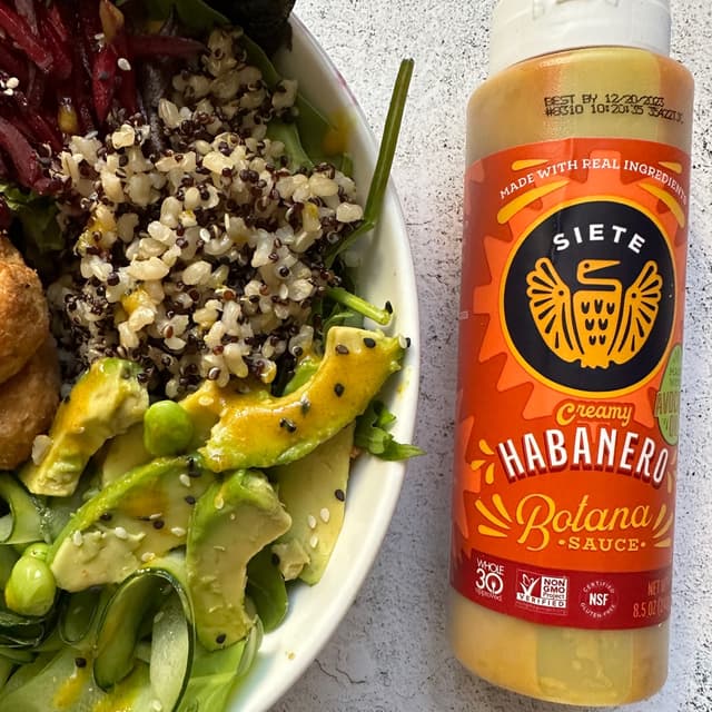 Amazing 🙌 creamy, spicy 🌶️ and bold flavor from this Creamy Habanero Botana Sauce by Siete!! I love🧡Siete brand products and they’ve really outdone themselves with their new salsas!! I added to my Poke Bowl 🍲 and have also tried with plant based 🌱 nuggets!! Its sooo good 😋🌶️!! I can totally see myself putting this on nachos!! ****Update - Also tried this on tostadas and tacos, all I can say is wow and yum 😋 !!**** #cleaningredients #lowinfat #nosugar and #lowinsodium! Ingredients- Water, avocado oil, carrots. apple 🍎 cider vinegar, dates. sea salt, habanero pepper powder, garlic, konjac. turmeric powder, guajillo pepper powder and beet juice 🥤 powder. I bought from their website for $26 for a 4 salsa 💃🏻 variety pack. Signup for emails/text messages and get 25% off your 1st order! https://sietefoods.com/products/botana-sauce-mix-pack Will definitely 👍🏼 buy these again!! #veganuary2023 #veganinillinois #sietefoods #welikeitspicy #habanero #veganhotsauce #vegan4life #vegan4theanimals #abillionlove