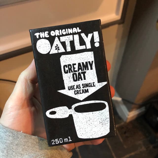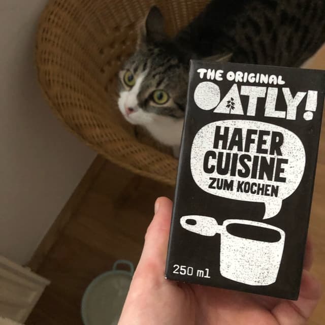 vegan cooking cream from oatly based on oat. free from soy and refined sugar. unfortunately, this is the non-organic version which i realized after buying. however, works well for cooking e. g. in soups, vegetables pans etc. will buy the organic version again, especially since the price is the same (1,29€/125g (->5,16€/kg)) #oatly #cookingcream #sugarfree #soyfree #vegangermany