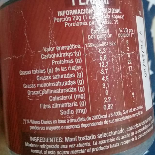 Muy rico producto. El sabor a chocolate no sobresale demasiado, aunque hace que la crema sea más dulzona. La consistencia es bien cremosa. Las calorías por porción son algo mayores a las que tiene la crema de maní regular
