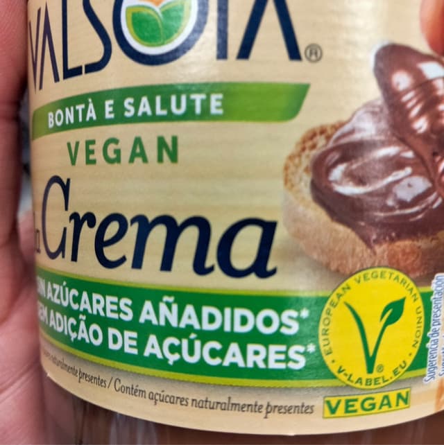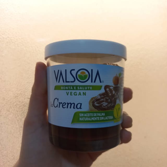 Crema de cacao y avellanas de la marca Valsoia, completamente vegan! Está buenísima !