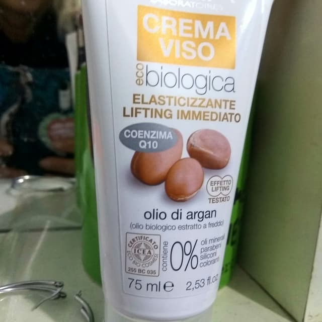 Crema viso antirughe all'olio di argan valida e facilmente reperibile nei supermercati, con un buon rapporto qualità prezzo. Nuova confezione in vetro.