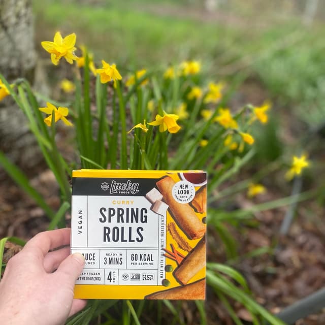 A spring-inspired, mini-daffodil backdrop for Spring Rolls seemed fitting. 😊 🌼 These curry spring rolls by Lucky Foods are a delicious addition to any Asian- inspired meal, especially when air-fried. The sauce that comes with them is ok, but I prefer using my Akadi sauce instead (see recent Akadi sauce review). These spring rolls are filled with cabbage, garbanzo beans, tofu, onion, green pea, and toasted unsweetened coconut among other ingredients. I recommend trying them if you haven’t already! p.s. These are made in my favorite state I call home, Oregon🌲 💦 🐛 🌹 #luckybrandfoods #springrolls #curry #curryspringrolls #asiancuisine #asian #chinese #chinesecuisine #madeinoregon #madeintualatinoregon #madeintualatin #vegan #plantbased