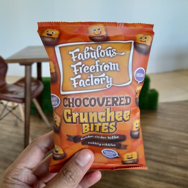 #fabulousfreefromfactory These #glutenfree #crunchy #chocolate covered pieces are kind of "meh" at best. They are very crunchy, but also chewy enough to get stuck on your teeth, which I absolutely hate. The taste was kind of sweet, but I think the chocolate should be less dark, because it doesn't quite fit, so it's not really that good.