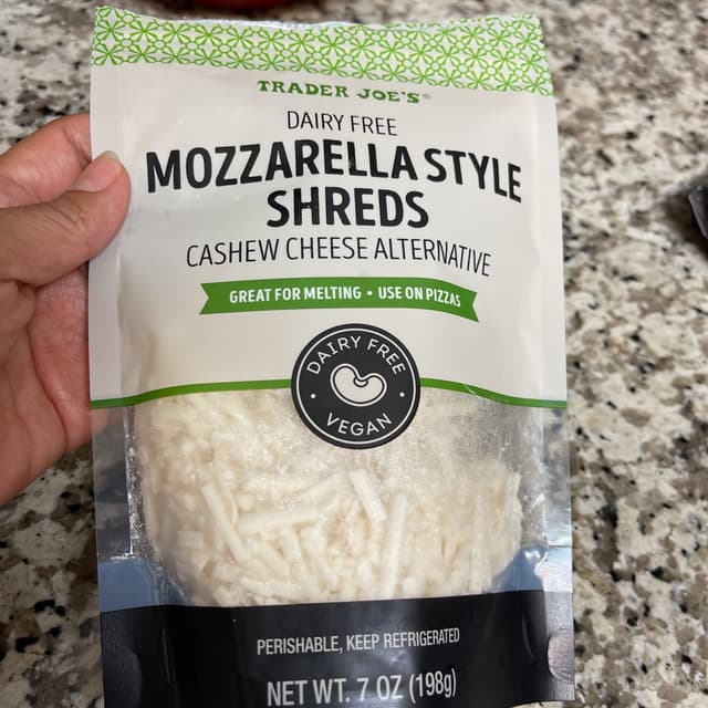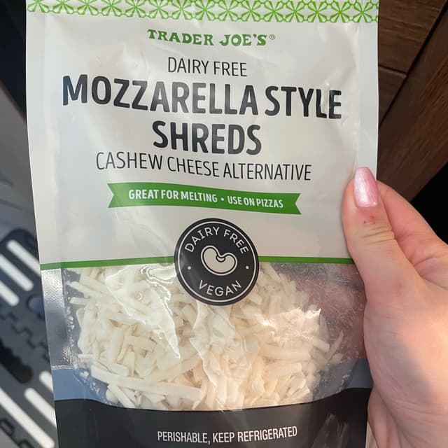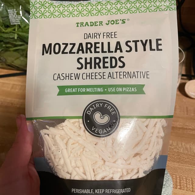 I had my doubts about these shreds as I don’t care for the other TJ’s vegan shreds, but I was happily proven wrong. These taste great straight out of the bag, AND they melted perfectly on a pizza. I will definitely buy these again.