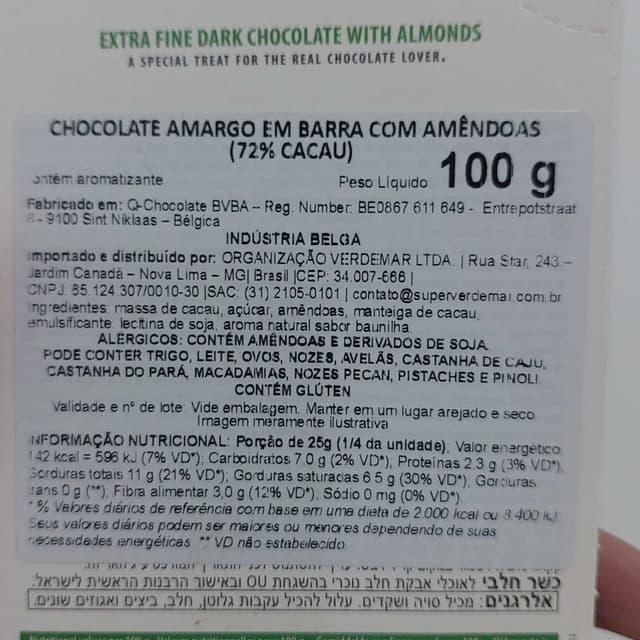 bcmartins823 years agoSee TranslationChocolate belga 72% com amêndoas e 100% manteiga de cacau. Bem delicioso!0