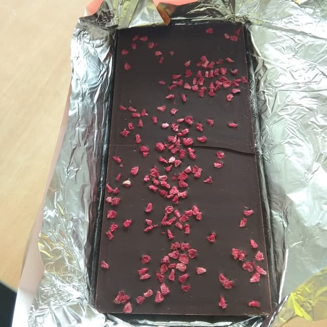 I got this as a gift and absolutely loved it! Reading the back of the packaging also contributed a little. The dark chocolate taste was strong, and slightly sweet. The mild fruity raspberry scent also went really well with the chocolate. #veganuary