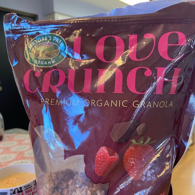Yummy organic chocolate granola with freeze dried berries . Great combo . I had this at my friends house her daughter wanted all the berries dug out of bag to eat lol. I had with a Trader Joe’s vanilla cashew yogurt . Was tasty I didn’t get many berries though because baby girl wanted them . .😋😁 #vegan #granola #organic
