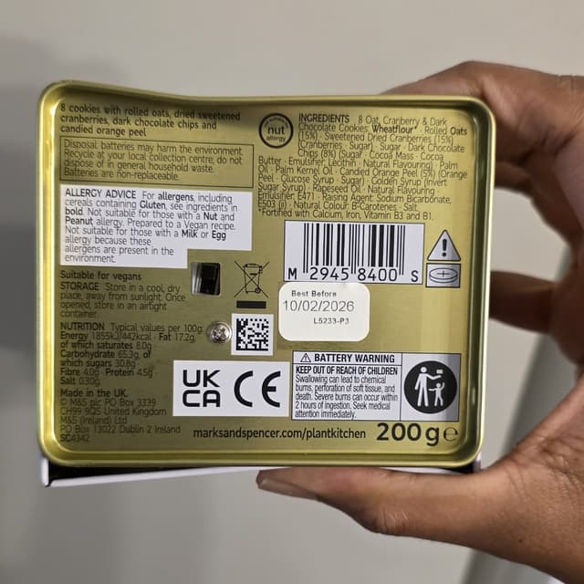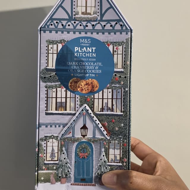 These cookies were pretty good. The oatmeal, dried cranberry and orange peel bits give a nice chewiness to it. It's got a nice crumb to it, perfect with my morning coffee. I was very excited about the metal tin! It has a little lamp inside and all the Christmas lights on the tin light up - so cool! The lamp light isn't that bright so it doesn't light all the way up, but I can easily switch up the light or put a candle inside. Love that i reuse this for years to come. A relative from London gifted this to us. I love what I've seen from M&S so far.