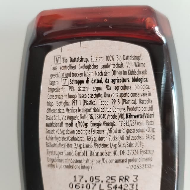 Ottimo prodotto, è uno sciroppo di datteri per dolcificare qualsiasi cosa. Mi piace molto. Preso da Lidl.