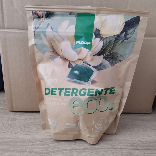 Cápsulas de detergente de la marca Flopp. Me decidí a comprarlo buscando una mayor conciencia medioambiental en mi consumo de productos de limpieza. De momento no termino de hacerme mucho al cambio, sobretodo porque no veo que generen espuma en el lavado ni que la eficacia en la limpieza sea igual.