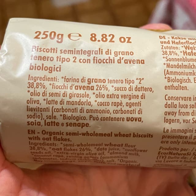 Questi biscotti simil GrandeCereale non mi sono piaciuti per nulla. Nonostante non abbiano zucchero aggiunto (ma succo di dattero, che comunque zucchero è) il gusto lo trovo troppo dolce, nauseante…. Inoltre non sento tanto l’avena😅 Non li consiglio.