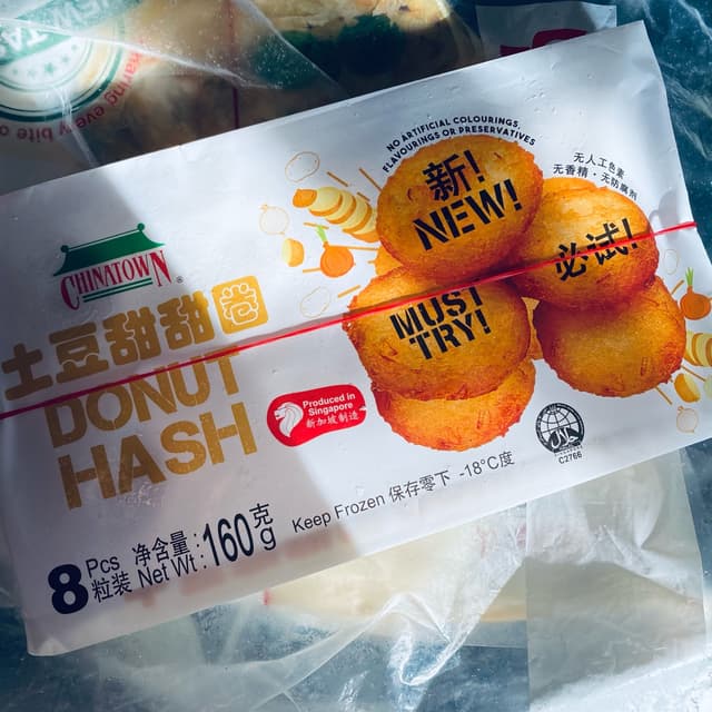 I found this new product in one of the big Shengshiong outlets. Cute little potato rings which are good as a quick snack or breakfast item. It's like seasoned mashed potato in a crispy layer and it also goes well with chilli. It would probably have looked better if I had deep fried it, overall I find this really tasty! Comes in a pack of 8 pieces. Forgot the price but shld be $3 ish?