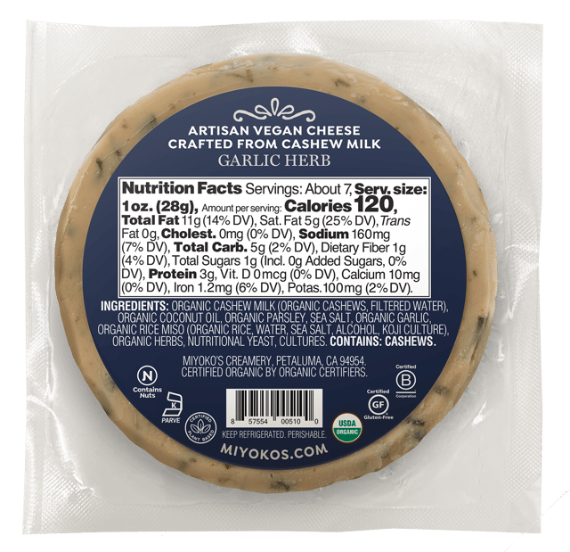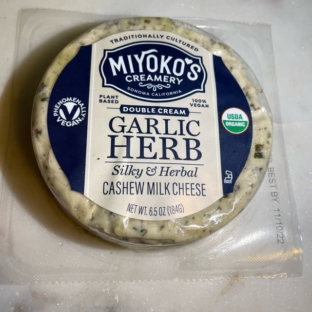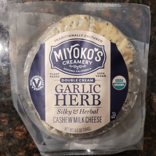 This is beyond delicious. It tastes exactly like the garlic cheese I got at a fine vegan cheese restaurant. It’s pricey, but a wonderful treat.