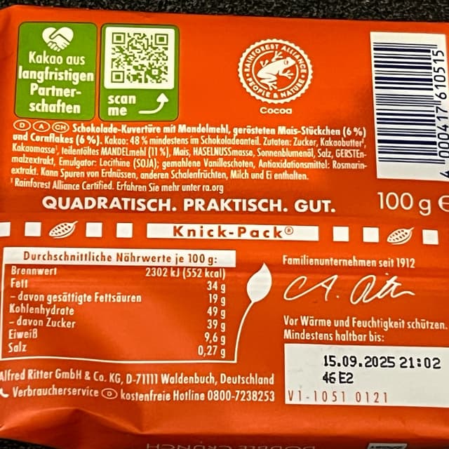 Ohhh yes😍what a great surprise to find a bunch of Ritter Sport #chocolate bars!! This one was absolutely fantastic, the “double crunch” is created with crunchy #corn and #cornflakes, creating a pop in your mouth at every bite🤤 #droolworthy for all the #chocolatelovers 🍫