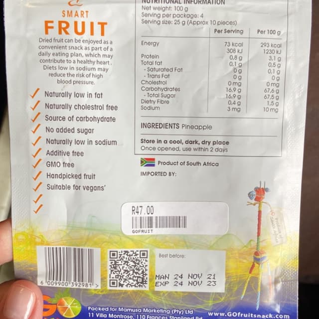 The dried pineapple is juicy and the taste is very close to fresh pineapple - healthy- no artificial nasties - perfection. I will buy this #driedfruits #pineapple #yummy
