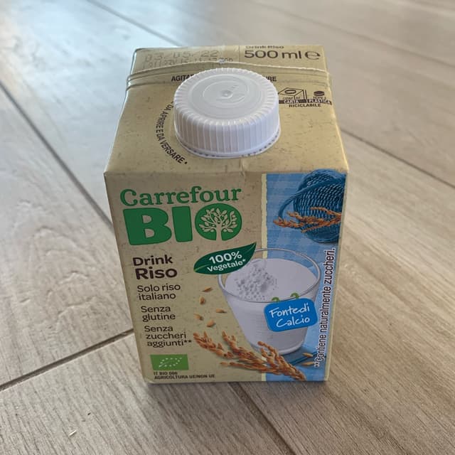 Acqua, farina di riso biologico 14%, olio di semi biologico, sale. Pochi ingredienti, biologici e di origine europea. Lo trovo troppo dolce se bevuto da solo, ma coppia perfetta con il caffè amaro.