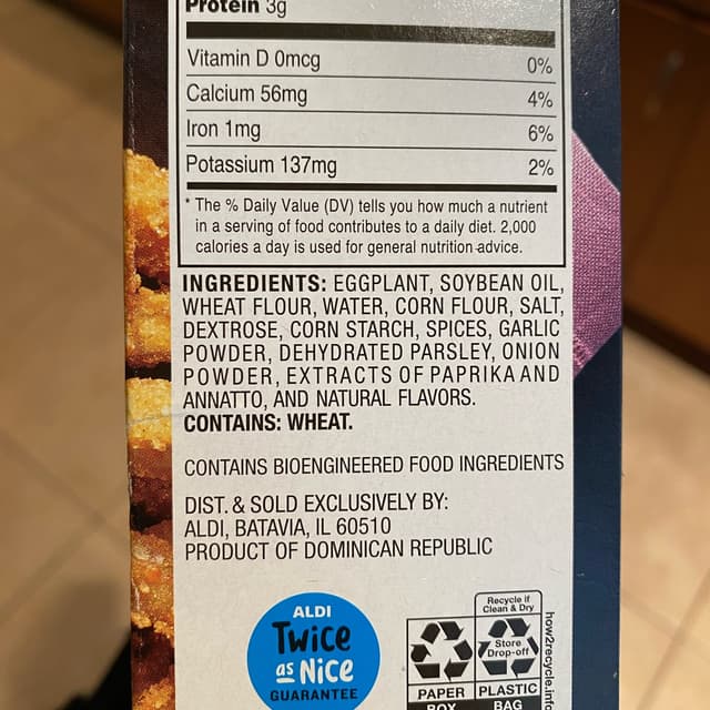 One vegetable (well, fruit) that I enjoy but can’t seem to cook to my own liking is eggplant so I was on the lookout for the return of the eggplant fries and cutlets to ALDI. Unfortunately my freezer is pretty small and I only had room for one so I chose the fries this time as I figured they may get crispier than the cutlets.