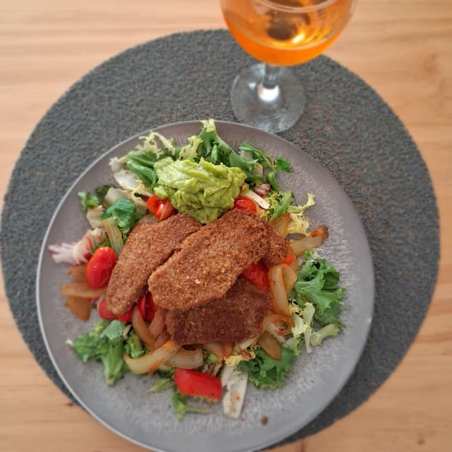 While vacationing on #lapalma island, we discovered a #hiperdino supermarket in El Paso that has a good selection of vegan items, including these #organic #breaded #seitan #fillets by Gerble bio. They are so tasty! The fillets are firm, though you have to handle then with care to keep the breading intact. But once in the skillet, the breading browns well and in five minutes, presto, they're ready to eat! I served them over a bed of lettuce and sauteéd onions, red peppers, cherry tomatoes and garlic along with a dollop of guacamole. They are an excellent protein - 14g per 100g - and are priced at 3,29€ for the 180g package that serves two. I'll buy these again for sure, what an original product! Yuka🥕: 🟢 Excellent 88/100 #hailseitan #escalopevegano #escalope #lapalmavegan #vegansfromcanaryislands #sinoesveganonoescomida #ifitsnotveganitsnotfood