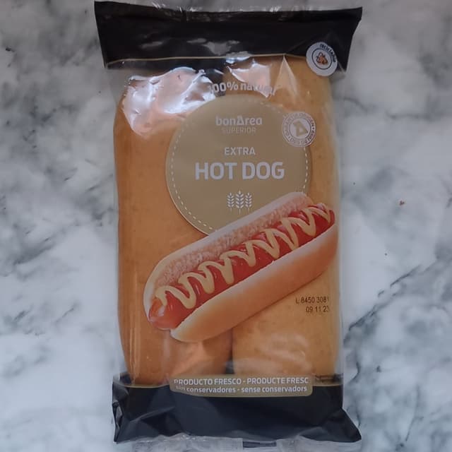 🌱 Nuevo producto en @abillion 🌱 Pan hot dog extra. Ingredientes: harina de trigo, agua, aceite de girasol, levadura, azúcar, extracto de masa madre, harina de trigo fermentada, gluten de trigo, almidón de trigo y sal. Producto 100% natural. No proviene de masas congeladas. Envase en bolsa de plástico. 2 unidades. 140g. Producto de España. Es muy difícil encontrar en el mercado panecillos especiales para hamburguesas y salchichas de Frankfurt (perritos calientes o hotdogs) que no contengan aditivos de origen animal. En concreto, la inmensa mayoría de panecillos de este tipo, panes de molde, etc. contienen los aditivos E-471 y E-472 (con sus variantes), que pueden ser de origen animal o vegetal. Yo, ante la duda, cada vez que veo estos aditivos en algún pan, lo descarto y no lo compro. Afortunadamente, este pan no contiene dichos aditivos. Ayer encontré estos panecillos por primera vez en Bonàrea. Hasta ahora habían comercializado este mismo pan con forma de bollos redondos para hamburguesas, pero ahora se han decidido a hacerlo también para las salchichas o hotdogs. Es todo un acierto, en mi opinión. El sabor es muy bueno, como el de los panecillos para hamburguesas. Su textura es blanda y esponjosa. Al ser un producto novedoso en Bonàrea, es probable que no lo tengan en todas las tiendas, pero vale la pena buscarlos. 🏷 Precio: 0,75€ 💳 Crédito de impacto: 0,70$ #pan #panecillos #panecillosparasalchichas #buns #hotdog #hotdogbuns #animalliberation #animalrights #veganfortheanimals #veganforlife #thefutureisvegan #veganisnotscary #loveganonodamiedo