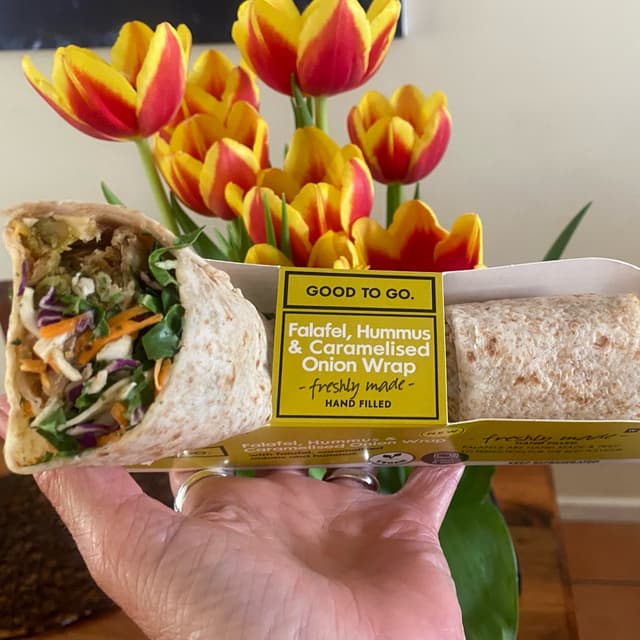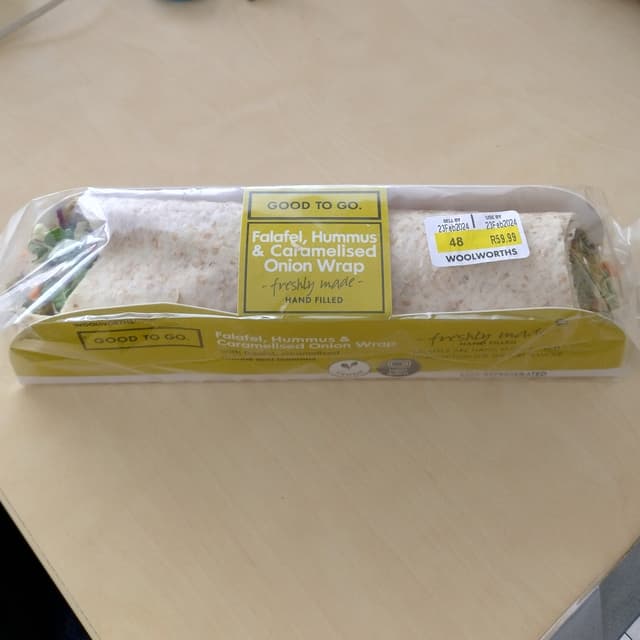 Convenience wholewheat wrap filled with falafel, hummus and caramelised onion. I might be wrong, but tastewise, it was sort of reminiscent of that pink/purple hummus and beetroot wrap Woolies previously had. It was good, filling was reasonable, but I think I might reach for something else when I need a quick bite from Woolies next time 🌯 #veganinsouthafrica #veganin2024 #forthedollar #fortheanimals #forthepartners #ditchdairy #veganfortheanimals
