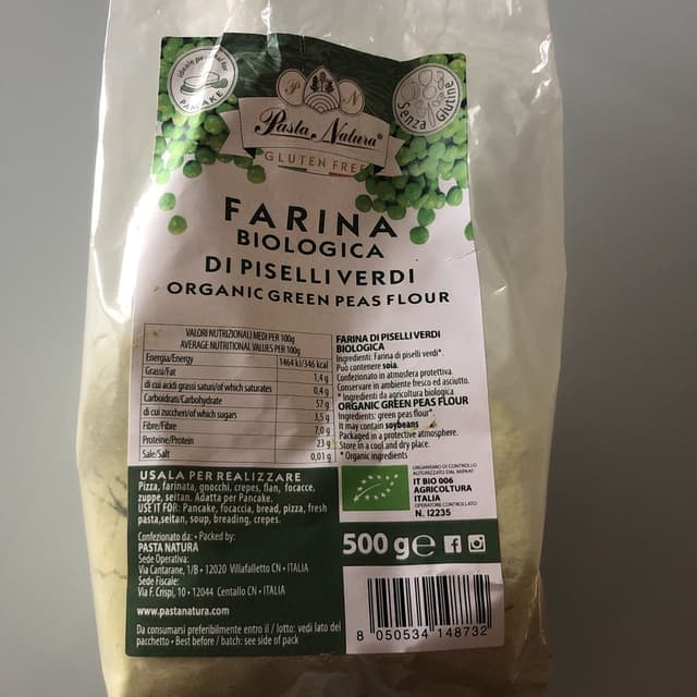 Farina di piselli con cui ho fatto una farifrittata semplice a cui ho aggiunto zucchine spadellate. Bruttina da vedere ma molto buona.