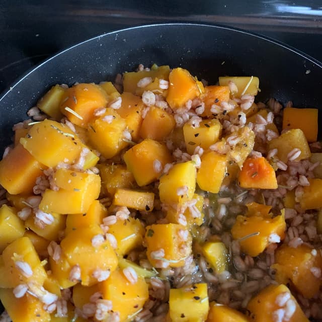 joantheflorist3 years agoSee TranslationQuick cooking farro combined with sautéed sweet potato or butternut squash and a little seasoning makes for a delicious and filling meal!0
