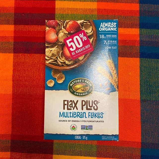These are really good! They have a great crunch and delicious healthy flavour. I love them in smoothie bowls. I found them 50% off, of course. #flaxplus #multibran #cereal #healthybreakfast #veganonabudget #breakfast #vegancereal #wholegrain