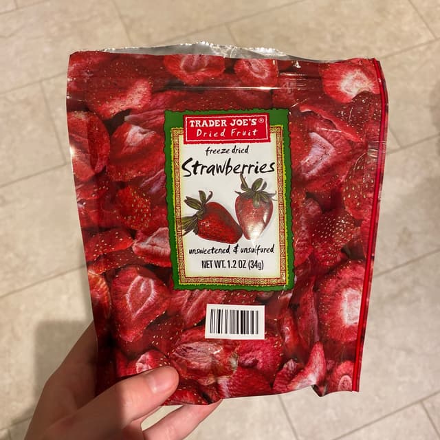 the freeze dried strawberries from trader joe’s are some of my favorite freeze dried fruit in general, and also some of my favorite out of what trader joe’s has to offer. they’re crunchy, tasty, and the bag is actually pretty full. i love to sprinkle these on my oatmeal, cereal, or just eat them as a convenient snack! i miss the triple berry o’s that trader joe’s used to carry, and it’s nice to be able to recreate it at home. #traderjoes #vegantraderjoes #freezedried #strawberry