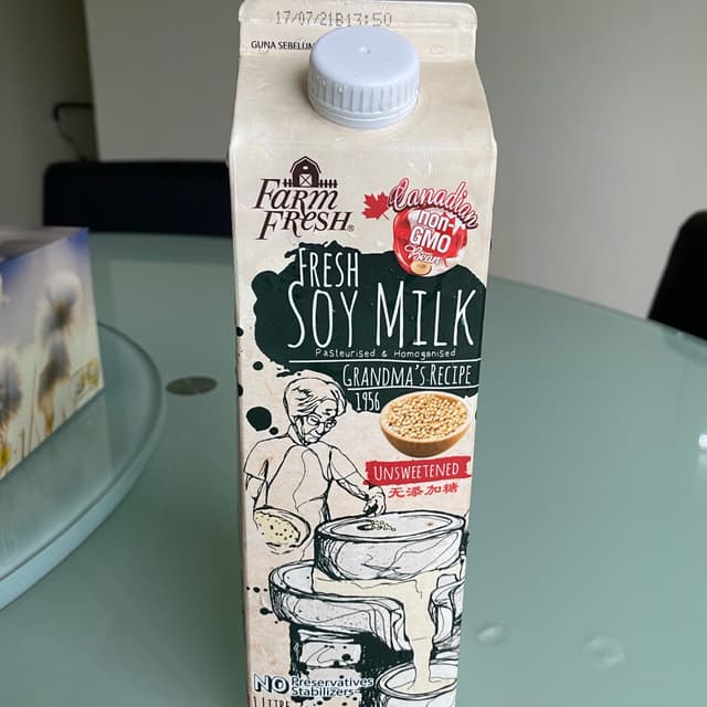 RM6.90. I got a 2-for-1 deal here, which was a great deal. (This listing needs a name change I think. Should be "Fresh Soy Milk, Original" to match with the unsweetened listing. Quite pleasant tasting. Decent thick-ish mouthfeel at 3.1% protein. Slightly sweet with a faint brown sugar aroma. #buatanmalaysia