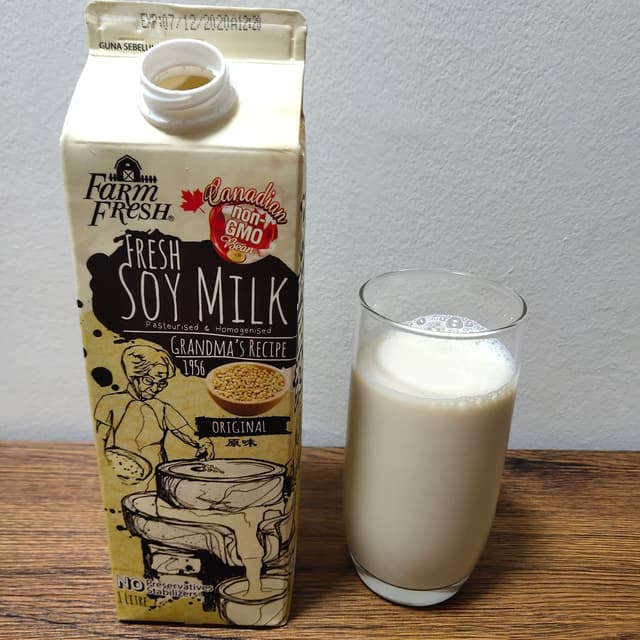 And the #soy just keeps on coming 😜 There’s just so many to choose from 🤩 This entry comes from Farm Fresh. I will say I bought this with faith in the brand but not in the recipe so it’s more #forthedollar This is by far the most thicc #soymilk I’ve tried from a box. It’s not very sweet and has that drying effect in your mouth 😛 Sorry, grandma… I don’t think this would’ve been my #soymylk in 1956 either. It tastes close to this Chinese jelly beancurd dessert (not for me) so you’d be into this if you love those 👍 RM 8.90 is certainly on the pricey side but there’s no doubt that it’s got quality 👌 This one is for the books on #teamsoy 🥛😏 #ditchdairy