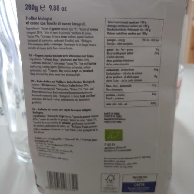 Mi piacciono un sacco questi biscotti al cacao, parzialmente integrali, con ingredienti semplici, sono appaganti sia da soli che inzuppati. Ottimo prezzo, da Naturasì