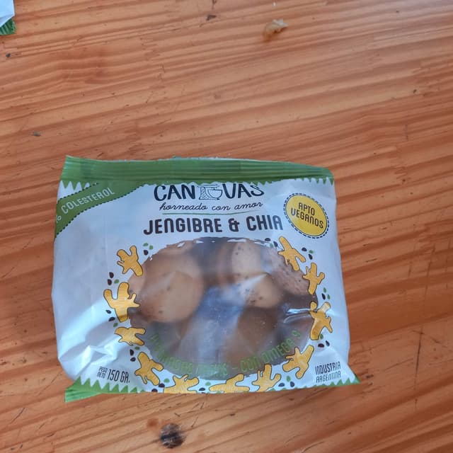 Galletitas canvas sabor jengibre y chía. Son ricas y económicas. Me salieron $100 en un súper de la plata. Muy buenas.