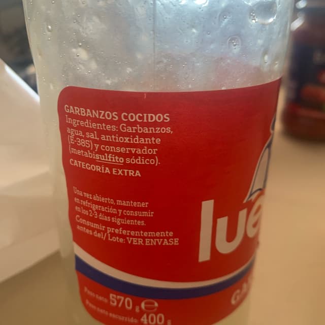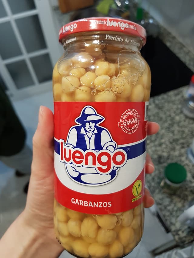 Exquisito envase de garbanzos apto para hacer un sabroso hummus para esparcir en un bollo de nuez o tostadas de centeno y aguacate.