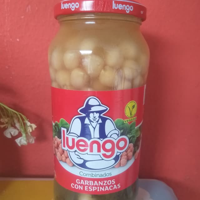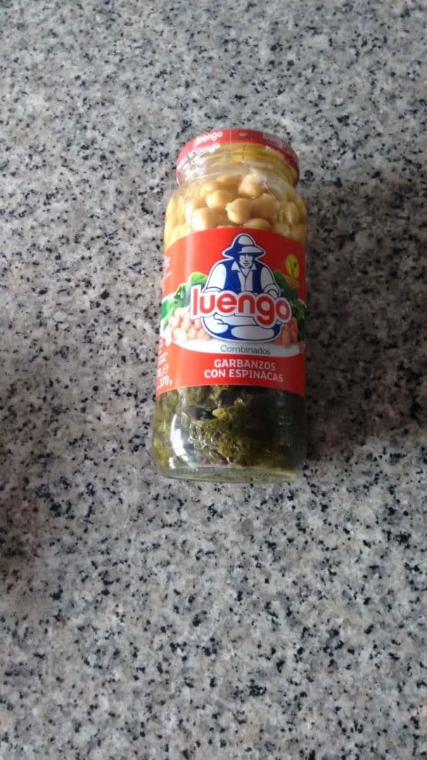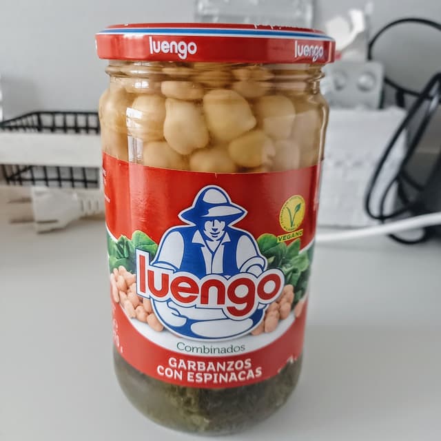 Garbanzos con espinacas en frasco de vidrio, verter en un plato, calentar al microondas y listo para comer. Acompañado con poco de pan, queda un plato rico, barato y nutritivo. Para que luego digan que es caro ser vegano