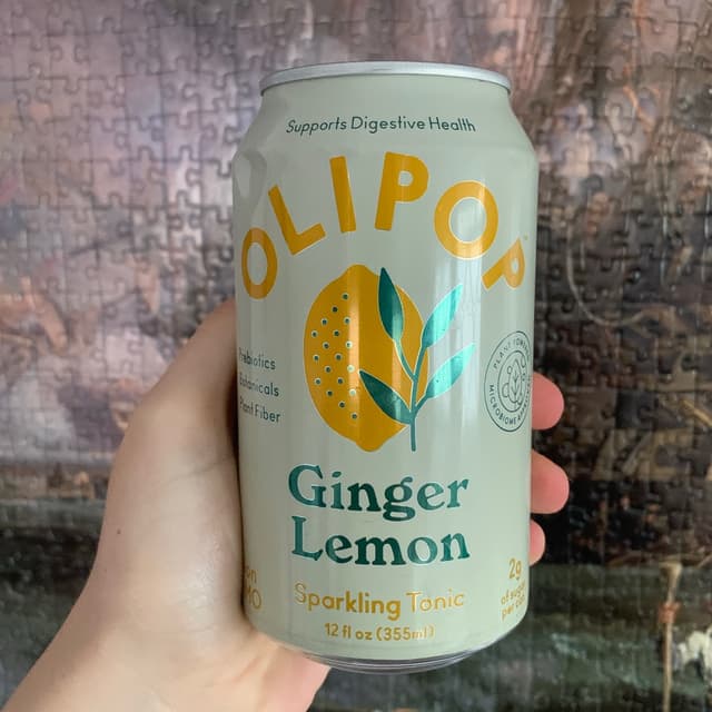 i’m not the hugest Olipop fan, i'd honestly rather have regular soda, but i think my mom enjoyed this Ginger Lemon kind! it’s a sparkling tonic so it is carbonated and the flavor is a nice alternative from their other colas. 🍋