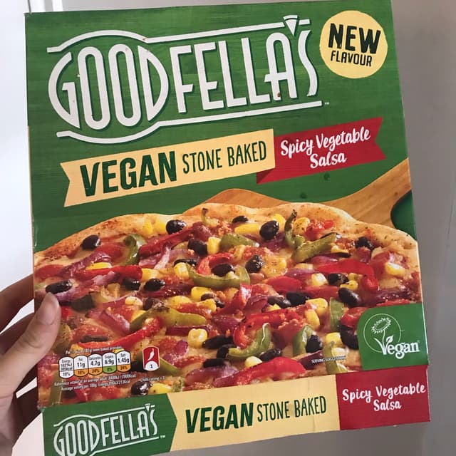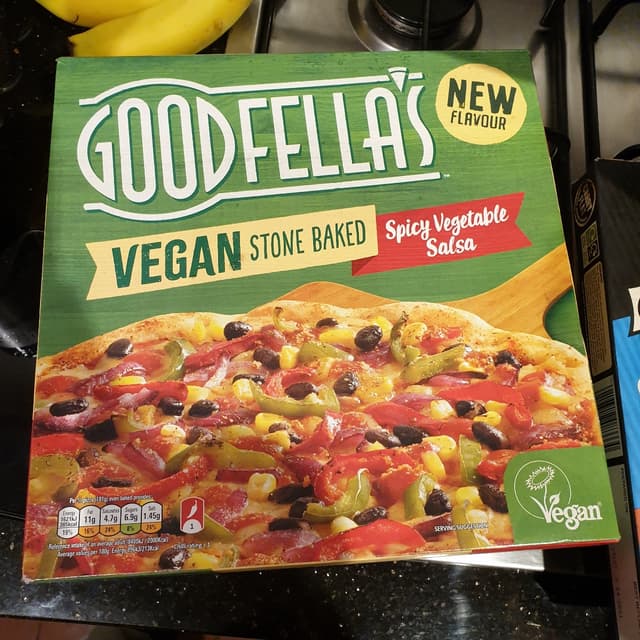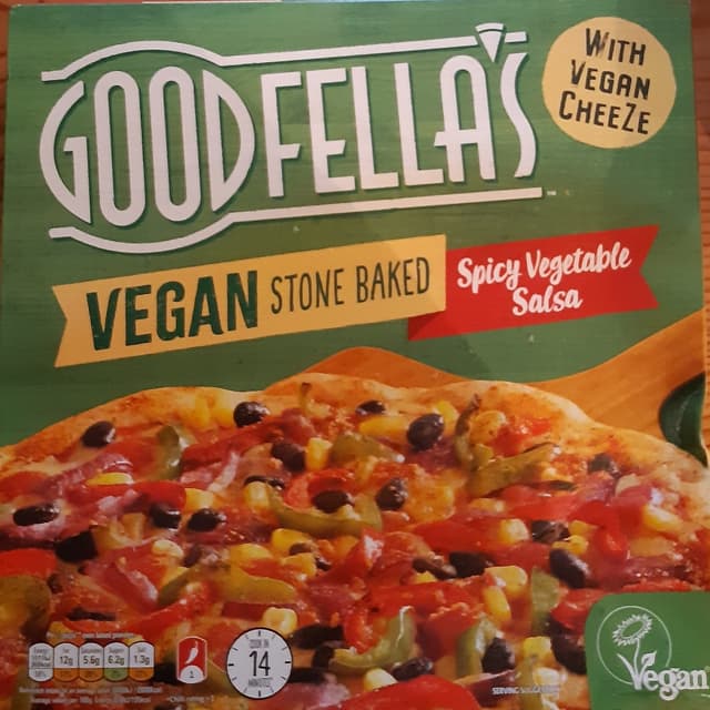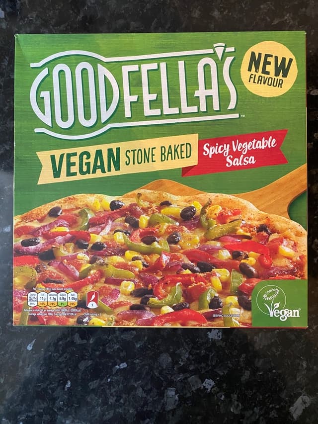 Goodfella's Spicy Vegetable Salsa Stonebaked Pizza is a vegan pizza that features a variety of vegetables, including little black beans, and is topped with a spicy salsa. The crispy crust and vegan cheese add texture and flavor to the pizza. This pizza is a quick and easy meal option that has received positive reviews for its taste and quality.