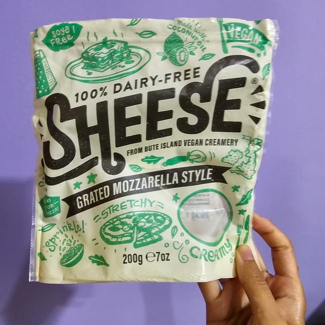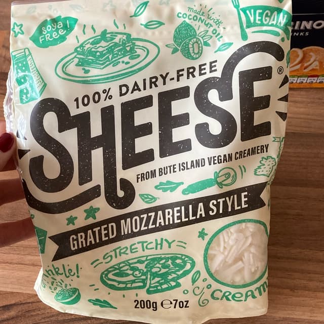 Sheese grated mozzarella cheese. Very nice topping for making your own pizza. Had this on a pizza base & topped it with vegan garlic spread soft cheese to make a garlic pizza bread, it was melty & delicious! 🧀👌