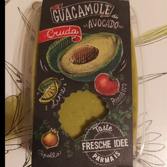 Guacamole con pezzi di avocado e pomodoro al suo interno. Come gusto pensavo meglio, preferisco altre marche.