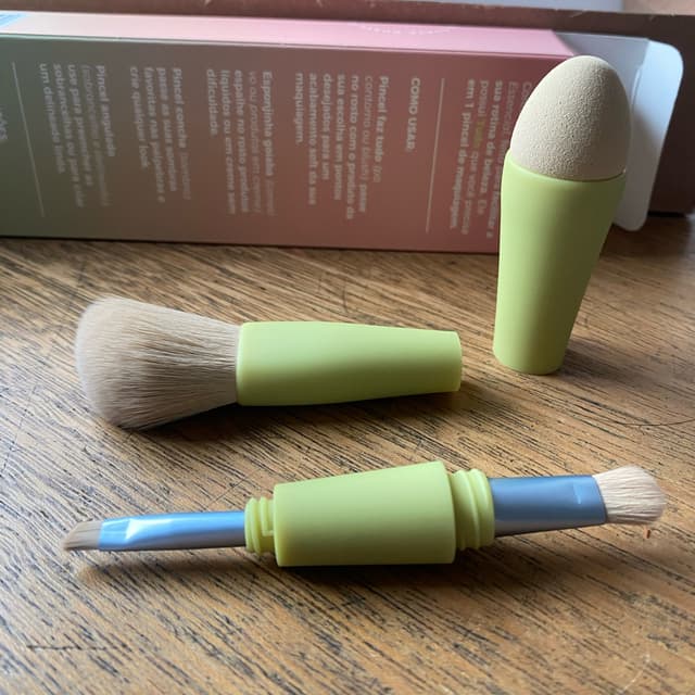 Continuando … Também fez parte da minha empreitada da beleza; adquiri o pincel da guava; ele é um Pincel 4 em um, ou seja, ele tem quatro opções de utilização. Ele é perfeito !!! Uma esponjinha, para passar usando base ou corretivo, na outra ponta tem cerdas para plush ou pó e por dentro duas opções de pontas para passar sombra ! É um design muito interessante e inteligente! Não sei o preço dele porque estava junto com os produtos . Mas ele é vendido separado. Muito massa ! #vegan #govegan #veganisnotscary #veganbeauty