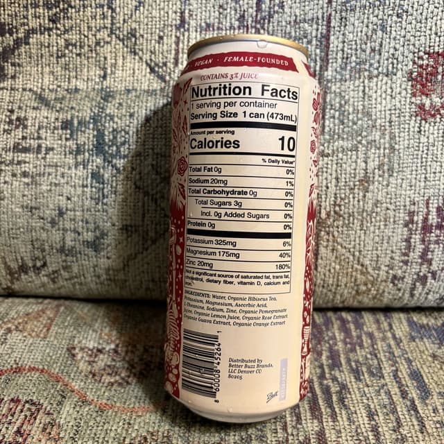 Refreshing electrolyte drink made with real ingredients! It tasted prominently of rose. Other flavors are guava, hibiscus, lemon, and orange. It’s also slightly sparkling, making for a more elevated experience than a sports drink! #femalefounded #hydration
