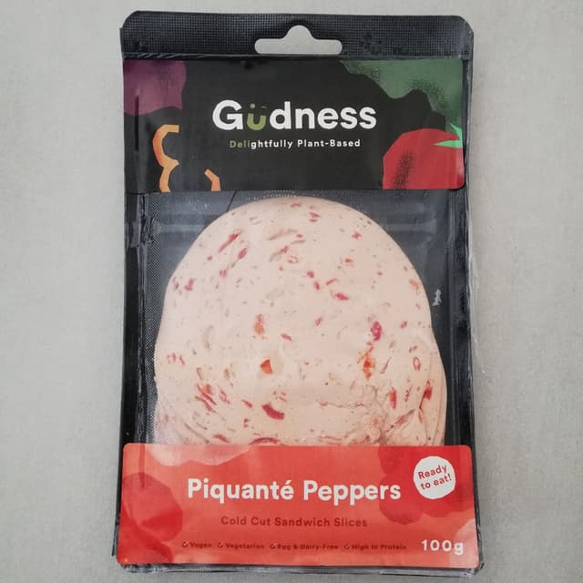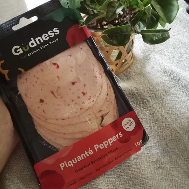 • Is Gudness Picante Peppers Cold Cut Sandwich Slices vegan? Yes! Gudness Picante Peppers Cold Cut Sandwich Slices is certified vegan by the abillion communityVEGAN