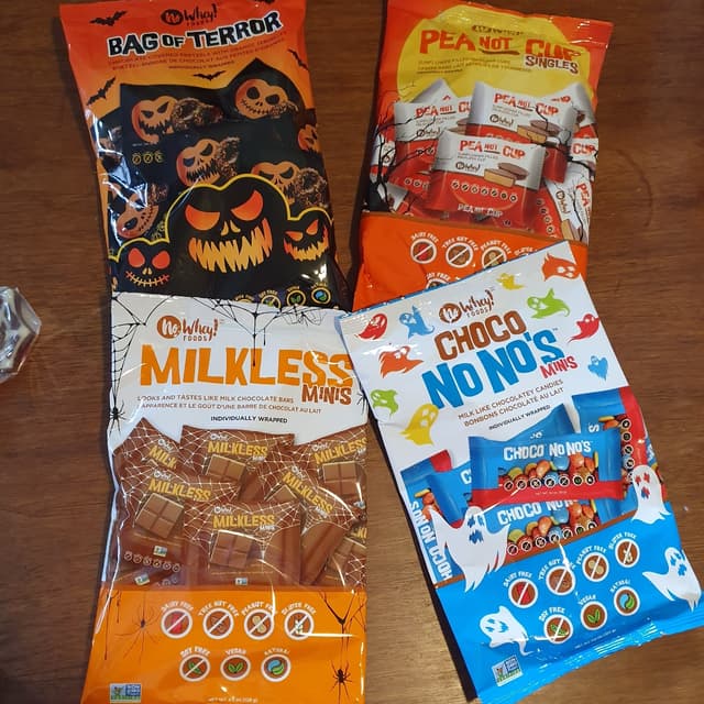 🍂🎃 Happy Halloween!! 🎃🍂 #veganisnotscary and I'm glad No Whey! Foods is proving that! It's 2023 and we have vegan milk chocolate Halloween candy with no scary ingredients! Everything by No Whey is vegan #glutenfree free from top allergens #kosher and made from natural ingredients Candy for everyone!! The chocolate covered pretzels were my favorite from this Halloween Variety Pack. We got these for Trick or Treaters, along with loads of accidentally vegan candy. I purchased these online but I also saw them at Food Fight! Vegan Grocery Store in Portland #veganisnotscary #veganin2023 #chocoholic #sweettooth #ditchdairy #chocolate #candy #halloween #halloweentreats #dogsofabillion