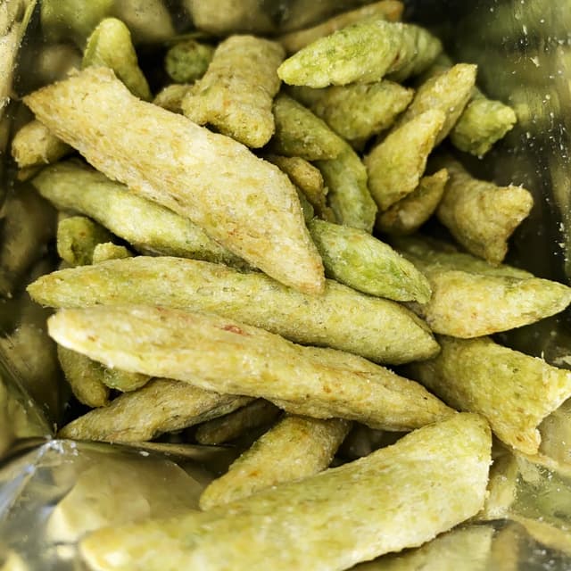 This is an #addictive #vegansnack ! My brother brought it from Thailand. It is made of #greenpeas , rice bran oil, pea fiber, seasonings and flavours. It is so #yummy but I am not sure about how healthy it is 🤫 But it is baked not fried! #palmoilfree #vegan2025